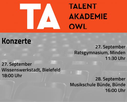 Ende September lädt die Talentakademie Ostwestfalen-Lippe (TA OWL) zu einem besonderen Konzertwochenende ein. Junge Musiker*innen und Tänzer*innen aus der Region treten an drei Spielorten auf und präsentieren ihr Können – der Eintritt ist frei.