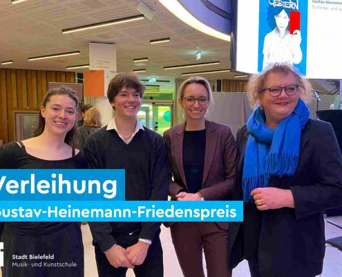 Im Rahmen der feierlichen Verleihung des Gustav-Heinemann-Friedenspreises für Kinder- und Jugendbücher übernahmen zwei Schüler der Musik- und Kunstschule die musikalische Gestaltung des Festakts: Ava und Mael beeindruckten mit ihrem Auftritt das Publikum.