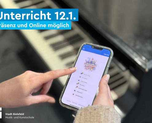 Der Unterricht der Musik- und Kunstschule der Stadt Bielefeld findet am Montag, 12.01., regulär statt. Aufgrund der bestehenden Glättewarnung besteht bei Bedarf die Möglichkeit, den Unterricht online durchzuführen. Sowohl Schülerinnen und Schüler als auch Lehrkräfte können sich ...