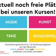 Egal ob Musik‑, Tanz‑, Theater- oder Kunstworkshop — Für Kurzentschlossene haben wir hier den Überblick, für welches Angebot es im November/Dezember 2025 noch freie Plätze gibt. Jetzt stöbern (Link direkt anklicken) und noch schnell einen Platz sichern: