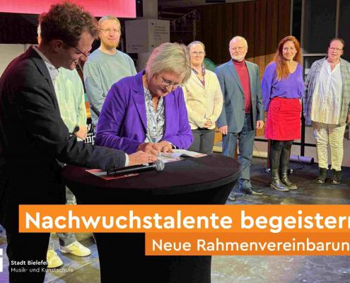 Hier ent­steht die geball­te krea­ti­ve Ener­gie zwei­er Bie­le­fel­der Insti­tu­tio­nen: Die Musik- und Kunst­schu­le koope­riert mit der Tanz­ver­mitt­lung des Thea­ters Bie­le­feld. Gemein­sam wird ein Pro­jekt ent­wi­ckelt, das Tanz und Live-Musik zu einem ein­zig­ar­ti­gen…